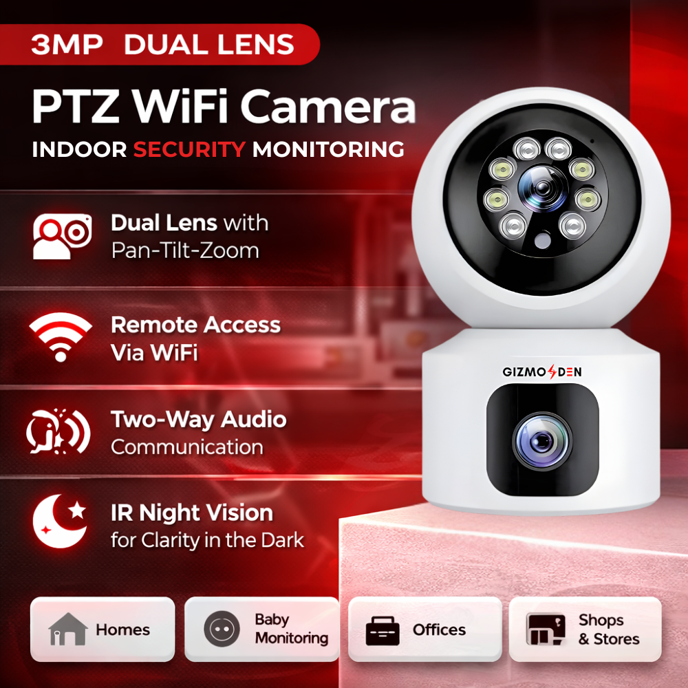 The 3MP 4K Dual Lens Indoor PTZ WiFi CCTV Camera is designed for advanced indoor security with enhanced coverage and smart monitoring features. Its dual-lens system provides both wide-angle and focused views, ensuring no area is left unmonitored.